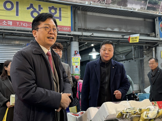 이병권 중소벤처기업부 제2차관이 6일 경북 경주 성동시장을 방문해 문화관광형 전통시장 추진현황을 점검하고 있다. 중소벤처기업부 제공. 재판매 및 DB 금지…