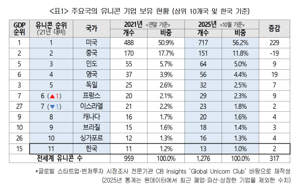 美 유니콘 기업 4년간 229개 증가…韓 고작 2개 늘었다