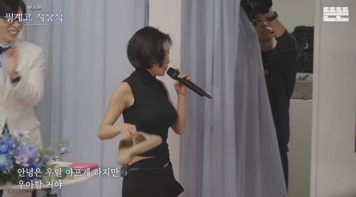 화사가 '굿 굿바이'(Good Goodbye)' 축하 무대를 선보였다. 21일 '뜬뜬 DdeunDdeun' 채널에서는 '제3회 핑계고 시상식'이 진행됐다. 이날 화사는 '굿 굿바이