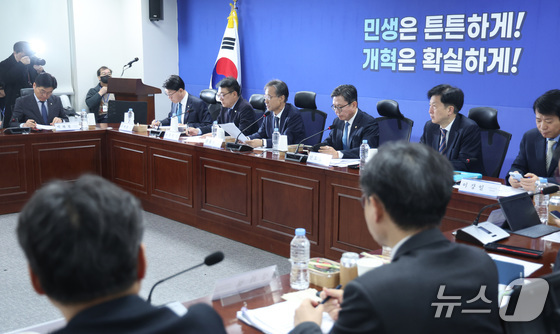 유동수 위원장이 16일 서울 여의도 국회 의원회관에서 열린 더불어민주당 중동사태 경제대응 TF 제2차 회의에서 발언하고 있다. 2026.3.16 뉴스1 신웅…