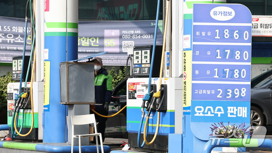 산업통상부가 원유 자원안보 위기경보를 '관심'에서 '주의'로 격상한 18일 서울의 한 주유소에 유가정보가 표시되어 있다. 2026.3.18 뉴스1 최지환 기…