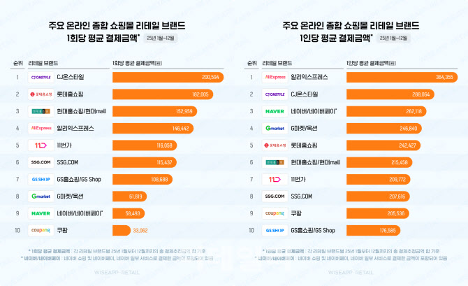 [이데일리 김지우 기자] CJ온스타일이 주요 온라인 종합 쇼핑몰 중 1회당 평균 결제금액이 가장 높은 것으로 나타났다. 국내 온라인 쇼핑 시장에서 ‘큰 소비’를 이끄는 플랫폼이 됐