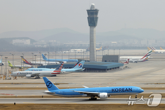 인천국제공항 계류장에서 대한항공 항공기가 이륙을 위해 이동하고 있다. 2026.3.30 뉴스1 박정호 기자중동 전쟁 여파로 여객 운임에 이어 항공 화…