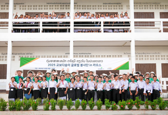 교보생명, 보호아동과 함께 라오스서 ‘희망의 도서관’ 건립