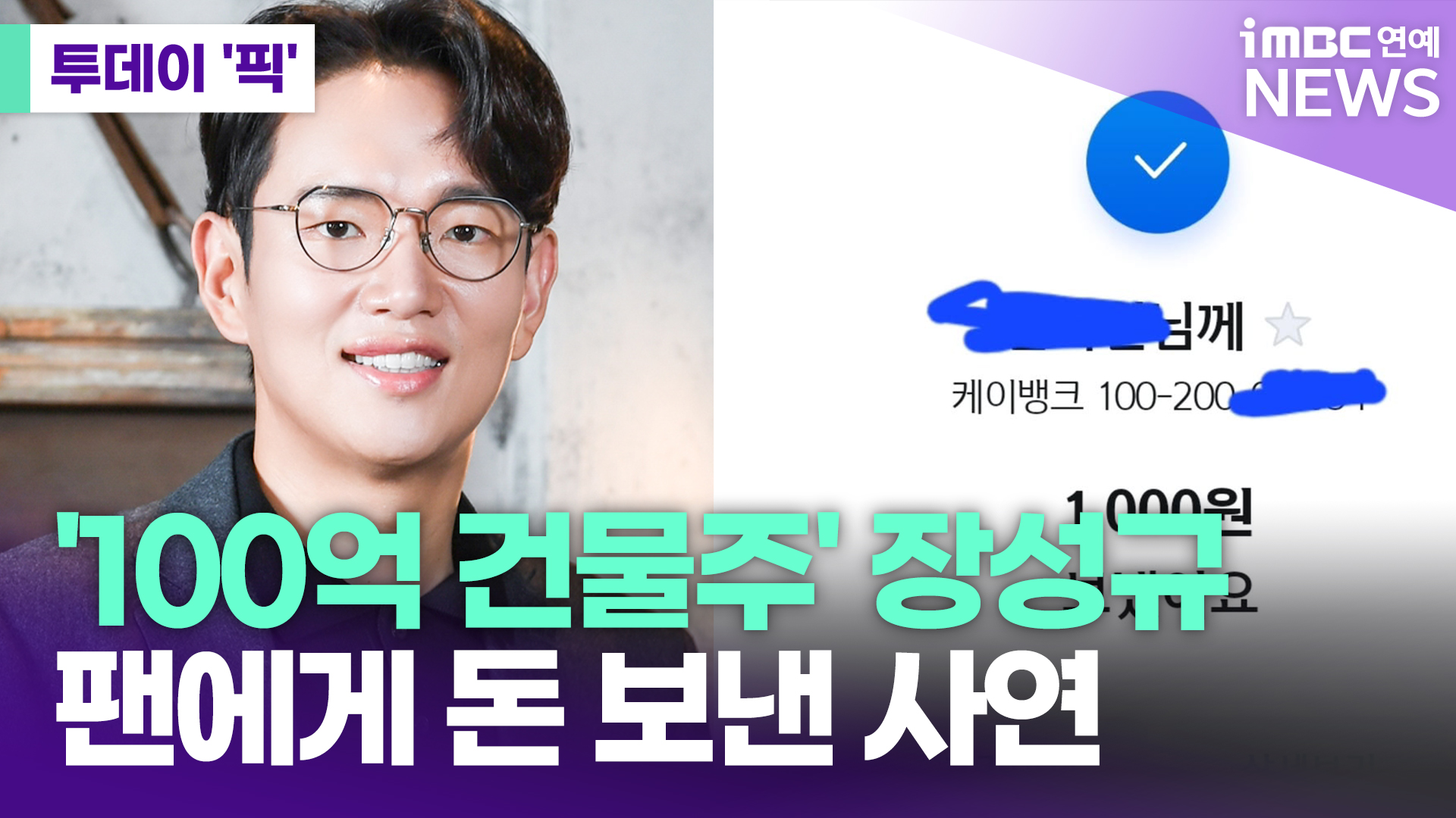 '100억 건물주' 장성규, 팬에 돈 보낸 사연 [투데이픽]