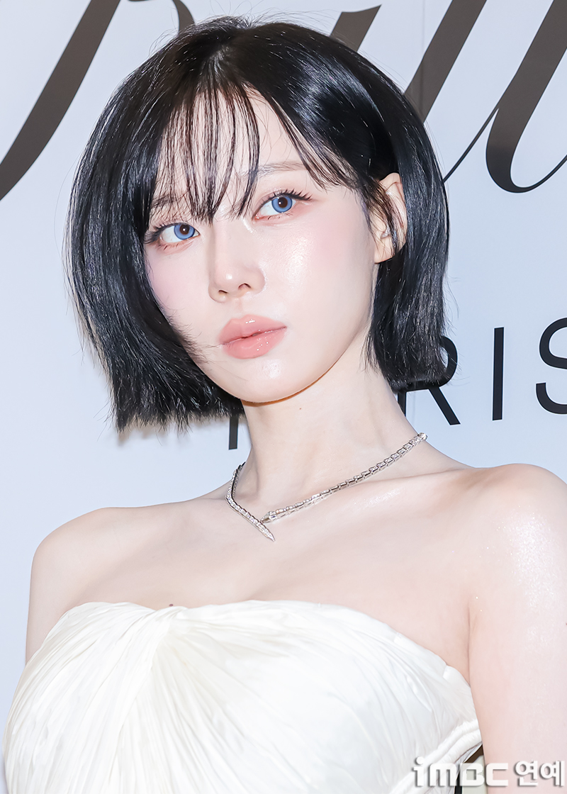 에스파(aespa) 윈터가 27일 오후 서울 강남 도산에 위치한 한 프랑스 향수 브랜드 플래그십 스토어 오픈 행사에 참석해 포즈를 취하고 있다. 이날 윈터는 블랙 단발과 네일, 블