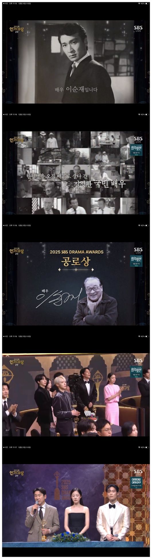故 이순재, SBS 공로상 수상 "100살 넘게 살겠다고 했지만"('2025 SBS 연기대상')