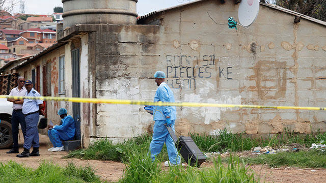 그는 출장 중이다.