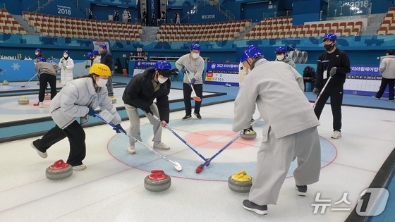 "겨울엔 컬링이다"…여름 서핑에 이은 낙산사 템플스테이