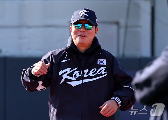 야구 국가대표팀 류지현 감독이 일 오후 경기 고양시 국가대표 야구훈련장에서 선수들의 훈련을 지켜보고 있다. 대표팀은 오는 ,일 체코에 이어 ,일에 일본과 평…