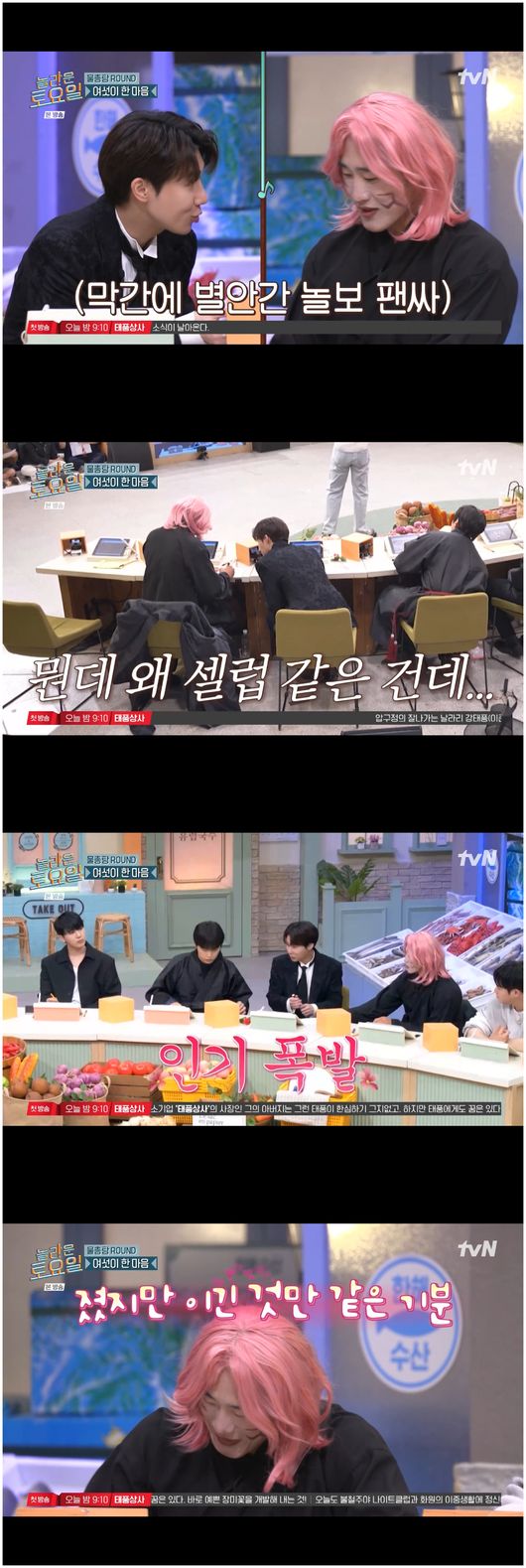 <리뷰 : 방송 시청 후 작성된 리뷰 기사입니다.> [OSEN=오세진 기자] ‘놀라운 토요일' 인피니트 김성규가 김동현에게 수줍은 팬심을 드러냈다. 11일 방영된 tvN 예능 ‘놀