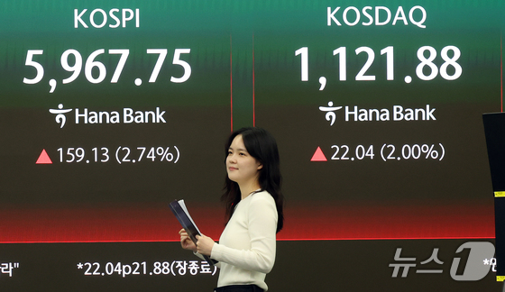 [뉴스1PICK]코스피 장중 6000선 터치 후 5967선 마감…반도체주 강세 영향