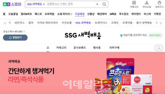 [이데일리 이소현 기자] 대형마트의 영업시간 외 온라인 배송 제한(새벽배송 금지)을 해제하는 입법이 추진되면서 네이버(NAVER(035420))의 ‘장보기’ 사업 확장에 강한 탄력