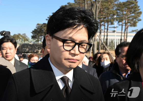 한동훈 전 국민의힘 대표가 29일 서울 여의도 국회 소통관에서 국민의힘 지도부의 제명 결정에 관한 입장 발표를 위해 발걸음을 옮기고 있다. 공동취재 2…