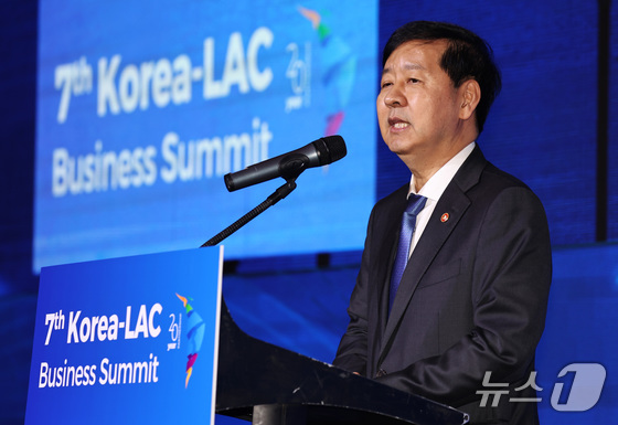 구윤철 경제부총리 겸 기획재정부 장관이 일 오전 서울 여의도 콘래드호텔에서 열린 '제차 한-중남미 비즈니스서밋'에 참석해 개회사를 하고 있다. ../…