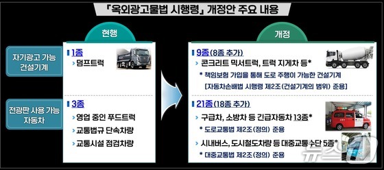 레미콘·굴착기도 '옥외광고' 불인다…소방차 등 전광판 가능