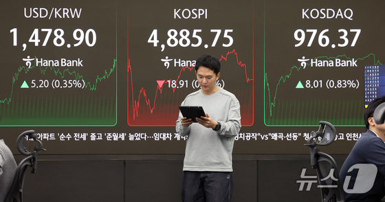 코스피가 12거래일 연속 상승세를 멈추고 숨 고르기에 들어간 20일 오후 서울 중구 하나은행 본점 딜링룸 전광판에 종가가 표시되고 있다. 2026.1.20/뉴스1 &co…