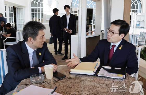 여한구 산업통상부 통상교섭본부장이 10일현지시간 남아프리카공화국 그케베르하 보드워크호텔에서 열린 2025 G20 무역투자 장관회의 참석 계기에 리청강 …