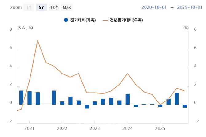 지난해 4분기 역성장…연간 성장률은 1% 턱걸이