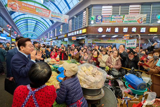 이재명대통령이 27일 전주 신중앙시장을 방문해 시민들과 인사를 나누고 있다. 청와대 제공. 재판매 및 DB 금지 2026.2.27 뉴스1…