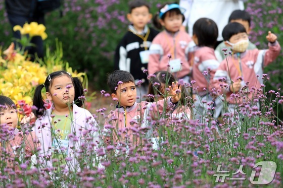일 강원 인제군 북면 용대리 일원에서 가을꽃 축제장을 찾은 어린이집 원아들이 꽃구경을 하고 있다. ‘인제에서 꽃길만 걷자’를 주제로 열린 이번 축제는 오는 일까지…