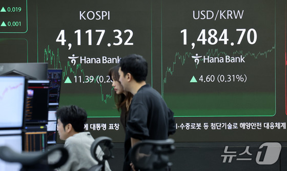 23일 오후 서울 중구 하나은행 딜링룸 전광판에 달러·원 환율이 나타나고 있다. 이날 코스피는 전일 종가와 비교해 11.39포인트p0.28%&…