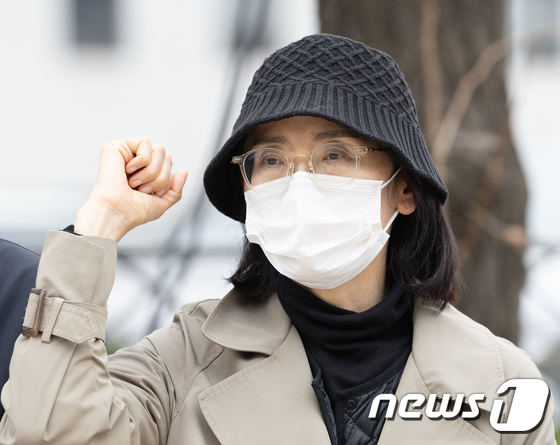 지혜복 교사가 서울 종로구 서울시교육청 앞에서 열린 기자회견에서 구호를 외치고 있다. /뉴스1 News1 이재명 기자서울시교육청이 학내 성폭력 사건을…