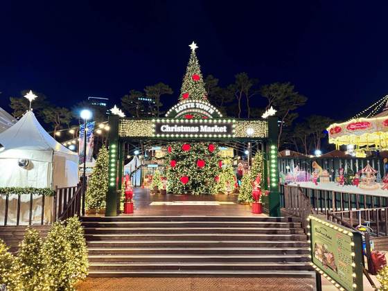 잠실 롯데타운 크리스마스마켓 입구. 롯데백화점 제공.롯데백화점이 20일부터 개장하는 '크리스마스 마켓'은 역대 최대인 800평 규모로 준비한 만…