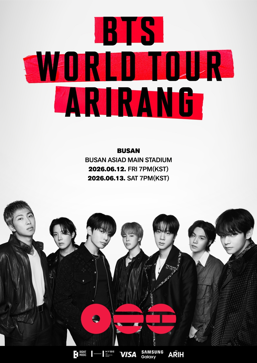 [이데일리 스타in 김현식 기자] 그룹 방탄소년단(BTS)이 부산 아시아드 주경기장에서 새 월드투어 ‘아리랑’(ARIRANG) 부산 공연을 펼친다. (사진=빅히트뮤직) 방탄소년단은