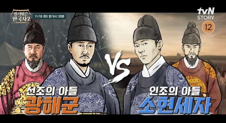 (MHN 이우경 인턴기자) '벌거벗은 한국사2'가 전란 속 '조선의 희망'이었으나 아버지와의 갈등으로 비극을 맞이한 광해군과 소현세자의 이야기를 조명한다. 18일에 방송되는 tvN
