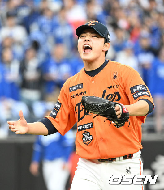[OSEN=대전, 이상학 기자] “(강)민호 형이 욕하더라구요.” 프로야구 통산 최다 경기 출장자도 혀를 내두를 만큼 강력했다. 불펜투수로 포스트시즌 데뷔전을 치른 ‘대전 왕자’