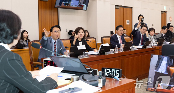 일 서울 여의도 국회에서 열린 법제사법위원회 대전고법 등에 대한 국정감사에서 국민의힘 법사위원들이 불출석한 오창훈 제주지방법원 부장판사 및 증인들에 대해 동행명령장 …