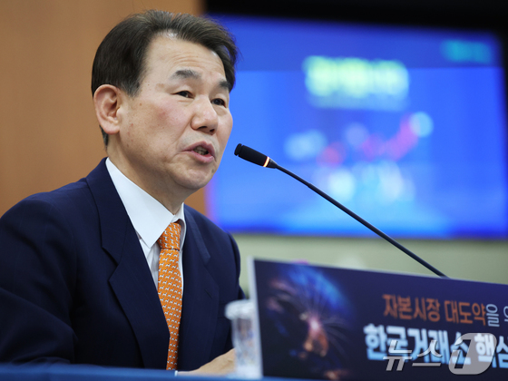 정은보 한국거래소 이사장이 5일 오후 서울 영등포구 여의도 한국거래소 마켓타워에서 열린 '2026년도 신년 기자간담회'에서 취재진 질문에 답하고 있다. 이날 한국거래소는…