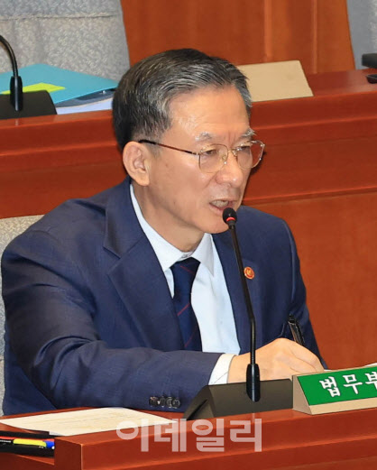 정성호 법무부 장관이 12일 오전 국회에서 열린 예산결산특별위원회 전체회의에서 질의에 답변하고 있다. (사진=노진환 기자) [이데일리 한광범 기자] 정성호 법무부 장관이 12일 대