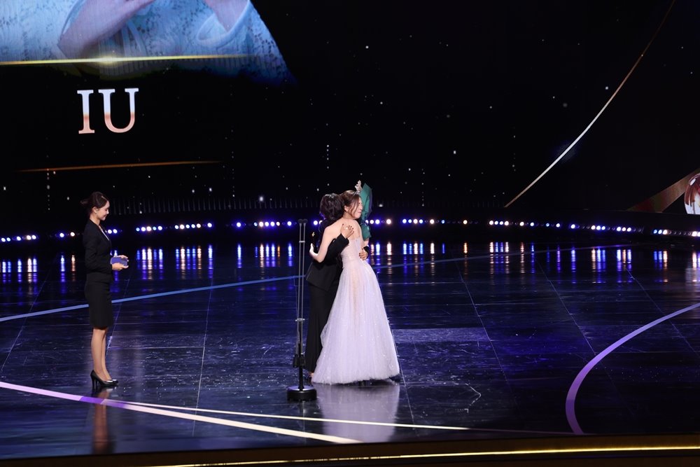 아이유, 염혜란과 뜨거운 포옹…‘서울드라마어워즈’ 연기자상 수상