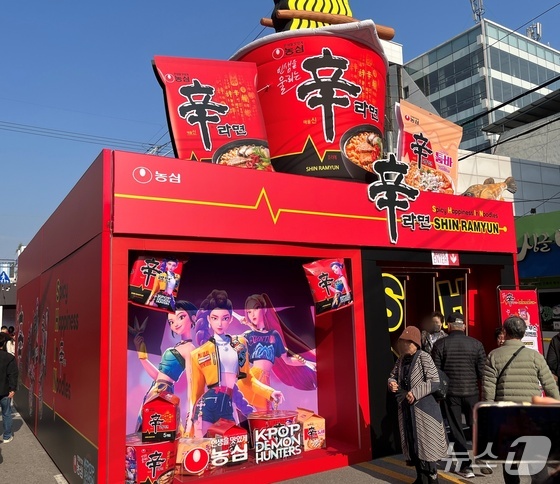농심 케데헌 신라면 부스에 사람들이 들어가고 있다. 2025.11.7 / 뉴스1 박혜연 기자 뉴스1"빨리 먹는다고 다가 아닙니다. 누가 제일 맛있게…