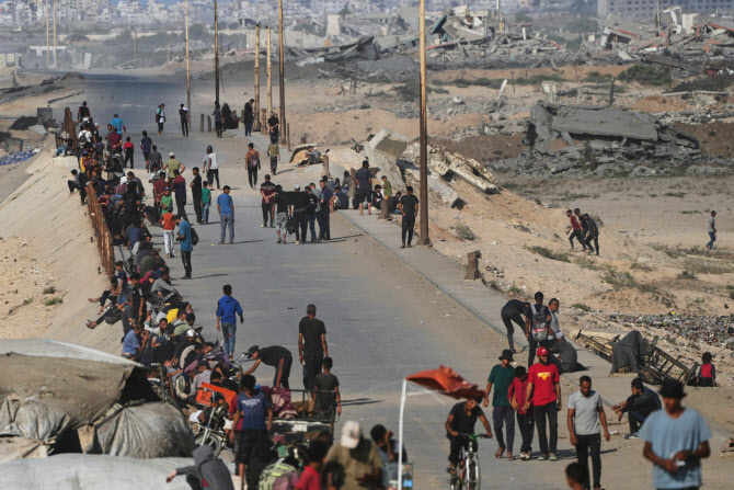[이데일리 박순엽 기자] 이스라엘군이 하마스와의 휴전 합의에 따라 팔레스타인 가자지구 일부 지역에서 철수하기 시작했다. (사진=AP통신) AFP통신은 10일(현지시간) 가자지구 민