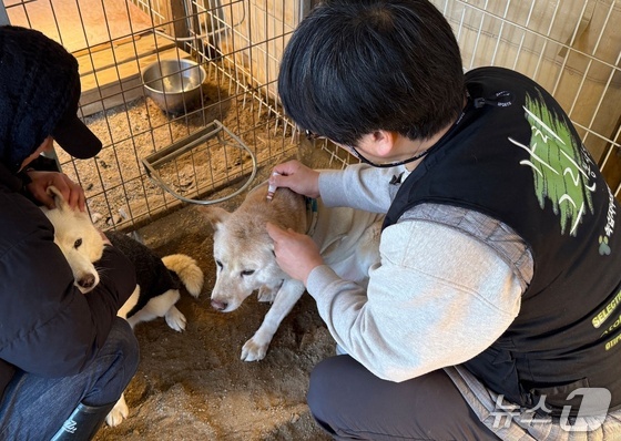 녹십자수의약품은 전귀호 원장과 함께 동물보호소에 심장사상충약 데피니트를 기부했다녹십자수의약품 제공. 뉴스1녹십자수의약품대표…