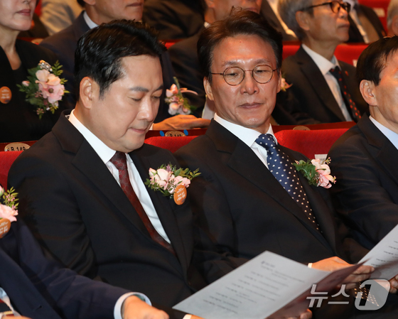 김민석 국무총리, 장동혁 국민의힘 대표가 일 오전 경남 창원 마산회원구 ·아트센터 대극장에서 열린 제주년 부마민주항쟁기념식에 참석해 있다. Ne…