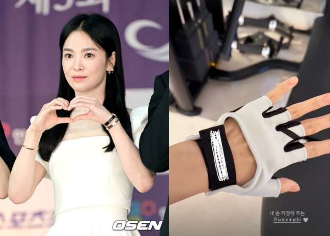 [OSEN=선미경 기자] 배우 송혜교가 가수 강민경과의 친분을 자랑했다. 송혜교는 31일 자신의 SNS에 “나란히. 내 손 걱정해주는”이라면서 두 장의 사진을 게재했다. 공개된 사