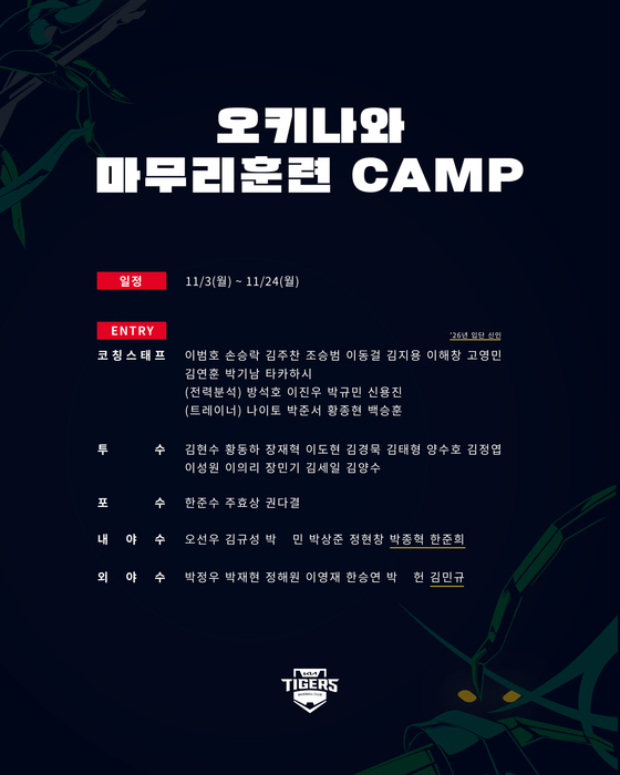 KIA 타이거즈 마무리캠프 참가 명단. KIA 제공프로야구 KIA 타이거즈는 일부터 일까지 일본 오키나와 킨 구장에서 마무리 훈련에 돌입한…