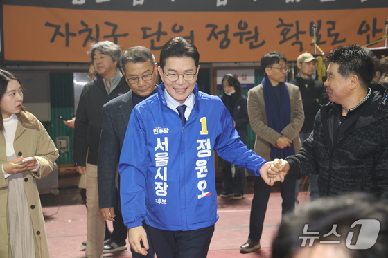 6·3 지방선거 더불어민주당 서울시장 예비경선 후보로 나선 정원오 전 성동구청장이19일 오전 서울 잠실학생체육관에서 열린 2026 서울시 환경공무관 한마음축제에서 참석자…