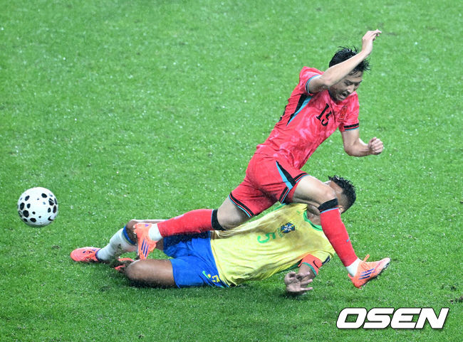 [OSEN=서울월드컵경기장, 정승우 기자] 한국이 실점을 허용했다. 홍명보 감독이 이끄는 대한민국 남자 축구 국가대표팀은 10일 서울월드컵경기장에서 '세계 최강' 브라질을 상대로