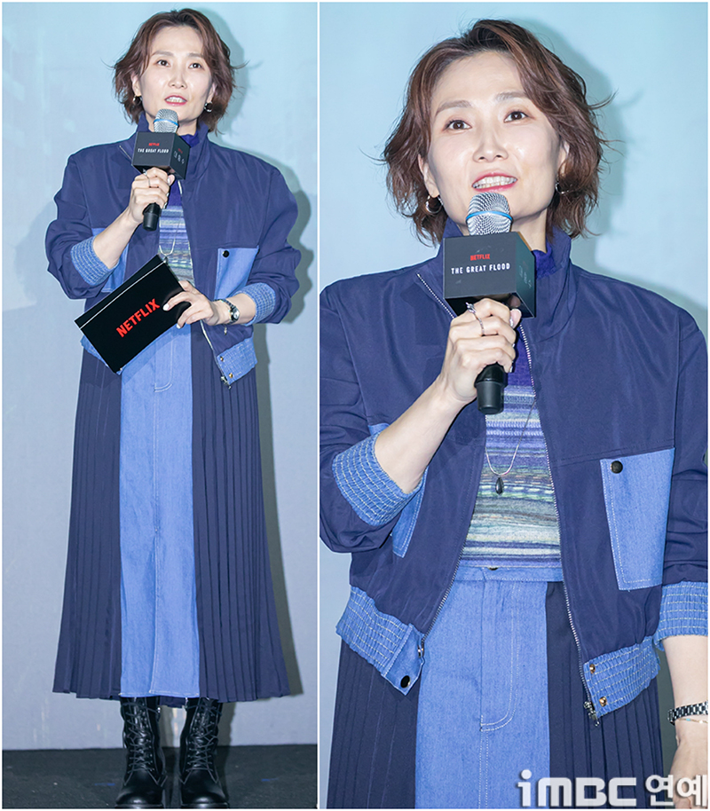 MC 박경림이 16일 오전 서울 용산CGV에서 열린 영화 ‘대홍수’ 제작보고회에 참석해 진행을 하고 있다. ‘대홍수’ 대홍수가 덮친 지구의 마지막 날, 인류가 살아남을 수 있는 마