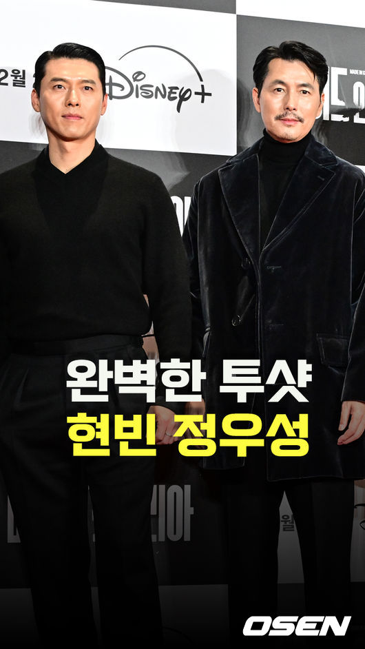 [OSEN=이대선 기자] 디즈니+ 오리지널 시리즈 ‘메이드 인 코리아’ vip시사회가 15일 서울 강남구 메가박스 코엑스에서 열렸다. 배우 현빈과 정우성이 포즈를 취하고 있다. 2