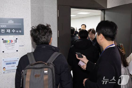경찰이 세계평화통일가정연합통일교의 정치권 불법 지원 의혹에 대해 전방위적인 압수수색에 나선 15일 서울 여의도 국회 전재수 더불어민주당 의원실에 수사관…