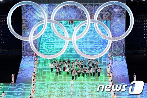 2022 베이징 동계 올림픽 당시 한국 선수단이 입장하던 모습. /뉴스1 DB News1 박지혜 기자2026 밀라노·코르티나담페초 동계 올림픽에 출전…