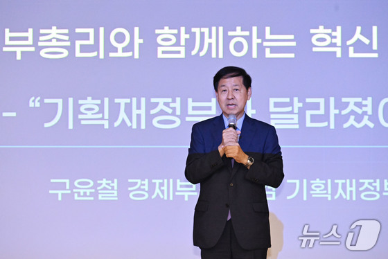구윤철 부총리 겸 기획재정부 장관이 지난 월 일 정부세종청사에서 열린 취임식에서 '부총리와 함께하는 혁신 첫걸음-기재부가 달라졌어요'를 주제로 강연하는 모습. …
