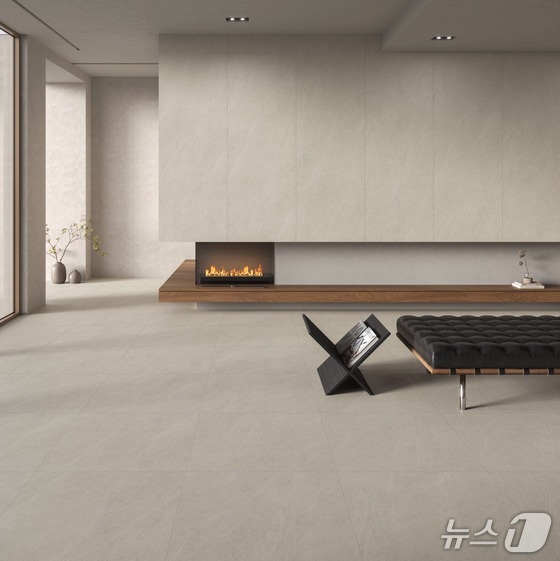 한솔홈데코가 자사의 대표 마루 제품인 'SB스톤 스퀘어800'에 디지털프린팅 기술을 적용해 리뉴얼 출시했다 한솔홀딩스 제공한솔그룹 계열 인테리어…