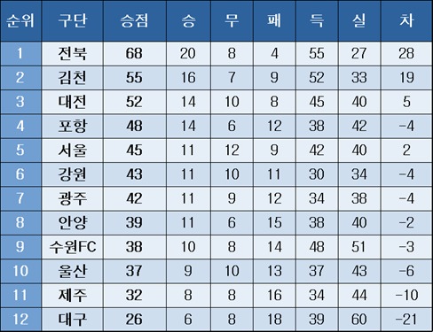 프로축구 중간 순위news.kr
